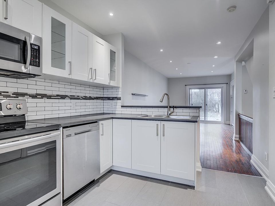Available for January 1st , 2026 move in. Prime Beach area..move in to this renovated and spacious 2 bedroom, 2 floor apartment. Recently renovated floors, kitchen. Modern stainless appliances, en suite laundry. Front porch and walkout to large deck and spacious backyard. Open concept great for entertaining. Walk to Queen street and the Beach! Layout: Kitchen, Dining and Living areas on the main floor. Bedrooms, Bathroom and Laundry in the basement. Stone stairs lead to front entry door elevated above street level. Extras: dishwasher, fridge, stove, built-in- microwave, washer and dryer. Tenant to pay hydro.