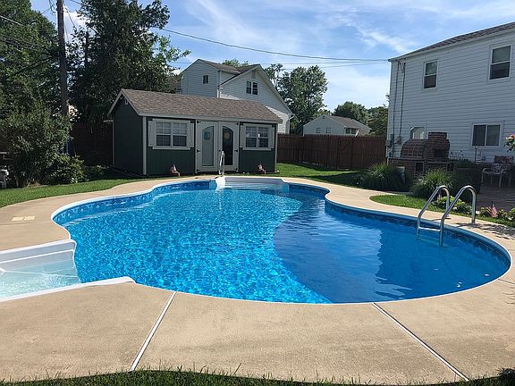 Lovingly restored and renovated home. 3 year old roof and 5/8 plywood replaced. New windows throughout. New kitchen with open floor plan to dining room with built in China cabinet. New Carrier split system AND new Boiler with all baseboard radiation replaced with new including zone valves and separate thermostats for optimum comfort. New hot water heater 40 gallon. New appliances. Cozy fireplace in spacious family room. The back yard has a built in pool 5 years old, surrounded by new 6’ stockade dense. 12x24 pool house completely finished with drywall , ceiling fans and flooring, a perfect place to relax. Unique Italian style wood burning brick pizza oven on one side of custom brick patio and on the opposite side is a stone gas log fireplace. Freshly Painted interior with Sherwin Williams paint (Neutral tones). Both bathrooms were completely gutted to the studs and remodeled with new toilets (power flush), tub and surround, vanities, mirrors, plumbing and fixtures and lighting! Marble and ceramic floors as well.