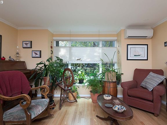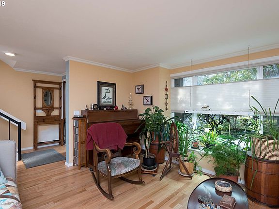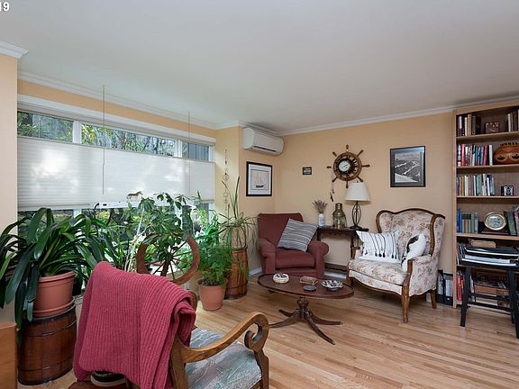 Lovely townhouse with farmhouse style remodel: beautiful wood floors living/dining, beadbrd cabinets, quartz counters, subway tile, gas stove, shiplap accents, gas fireplace in family room opens to private patio, skylight, balcony off master, sliding barn door on laundry, very private setting, end unit. Newer ductless heat pump and on demand water heater. Extensive cabinets in garage. Parklike complex built around creek, pool, clubouse