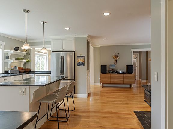 Very private, wonderful ranch at end of Whipple Hill Road with over 5 acres. It's on a great trail system that goes to Westmoreland, great for walking, skiing or biking. Home is in MOVE-IN condition with hardwood floors, mini splits for either heat or air conditioning, old fashioned pretty cook stove, which is the centerpiece of the home, master bedroom suite with walk-in closet, large tub & separate shower, walk in pantry with a cooks kitchen, 2 additional bedrooms sharing a full bath, formal living room with gas fireplace, den, large screened porch of back of home with attached patio and a heated office/extra bedroom over the garage . Oversized garage, with enough room for 3 cars or 2 cars and a workshop. 10 mins to downtown Walpole and 10 mins to Keene. Showings begin on May 4th at an Open house from 1pm-3pm.