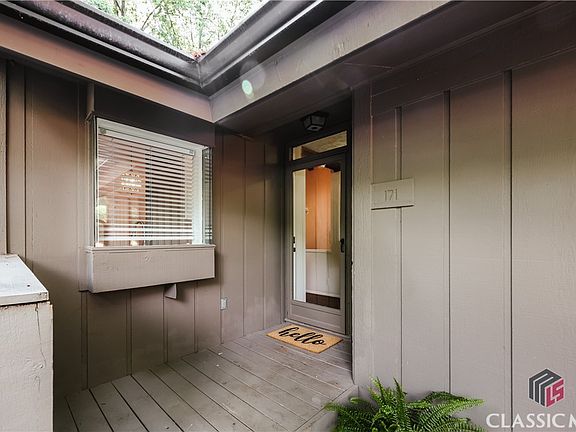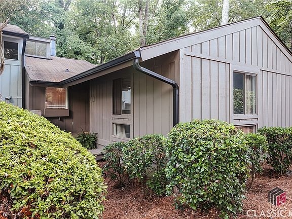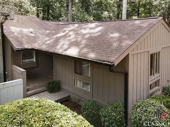 A convenient location and contemporary floor plan are the highlights of this 4 bedroom, 3 bathroom Athens condo. Located near the UGA campus/bus line and UGA Golf course, you are perfectly nestled between Campus, Downtown and Five Points! This incredible end unit features three bedrooms on the main floor, including the primary suite, plus a terrace level which is home to a 4th bedroom and bath along with secondary family room with a wet bar and full laundry room. The neutral decor throughout this unit provides a clean slate to make this well maintained unit your own. Natural light abounds throughout the well-designed floor plan, with sliding glass doors in both the living room and master bedroom and the vaulted living room is accented by a fireplace with shiplap detailing. With high ceilings in the main floor living spaces and bedrooms, this condo feels very spacious and inviting. A recently remodeled, bright, white kitchen has been opened up to the dedicated dining space, and features all new cabinetry and granite countertops. A shady lot with mature trees offers private outdoor space that enhances this end unit. Invite your friends and family over, because there is ample room for grilling, entertaining or simply relaxing on the large wrap around deck or on the lower-level patio. Residents of the condo complex enjoy a dedicated parking space in addition to two parking pad spots, access to a clubhouse, swimming pool and tennis courts.