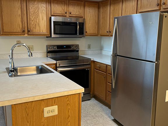 Desirable community and quiet location within short commute to all major arteries. Second floor two bedroom condo with soaring ceiling great room open to spacious oak kitchen complete with all appliances including refrigerator, built in microwave, dishwasher, range, garbage disposal. Peninsula with breakfast bar seating and separate table nook. Full size laundry room complete with washer and dryer. Great room has sliding doors leading to private balcony. Master suite with huge walk-in closet and private entrance to full bath. Forced hot air heat and central a/c. Assigned parking directly in front of unit. Available immediately. Rent includes lawn care, trash removal and snow removal. Tenant pays water, sewer and electric. Broker listed. Owner pays for association dues which covers lawn care, trash removal and snow removal. Tenant pays water, sewer and electric