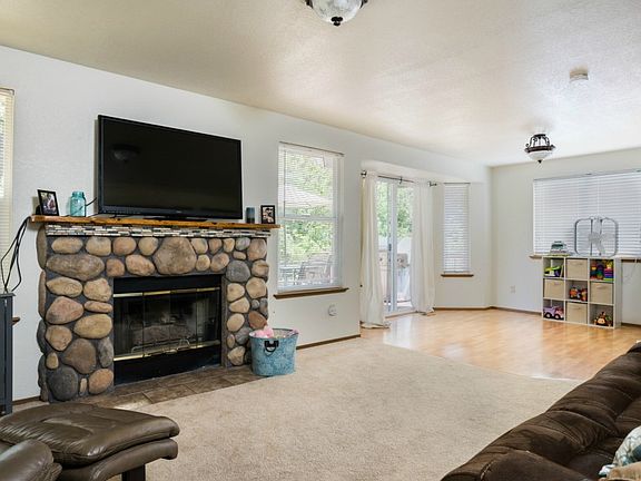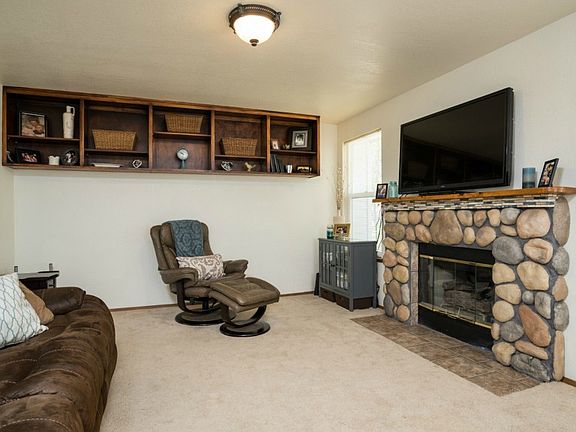 Single level living in the center of town. Walk to the pool, senior center or church from this 3 bed 2 bath home. The master bed has a ¾ bath. Open living room and dining nook with great stone mantle gas fireplace. Laundry room, dining room, and 2 car garage. The house backs up to church property so the yard is open, feels very spacious and has fruit trees. The back deck makes a great place for grilling or entertaining guests. Don't miss this home in a cul-de-sac priced to sell!