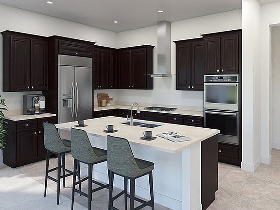 Live in luxury in the Agostino. This 2,797 square foot home has 3 bedrooms and 4.5 bathrooms. Enjoy the comfort of a large home, with the convenience of just one floor. The family room is large with an adjoining dining room for formal or casual meals. These rooms open to the spacious covered patio, great for enjoying the view or entertaining outdoors, and there is even a full-sized bathroom outside. The gourmet kitchen includes quartz countertops, GE® stainless steel appliances, double oven and gas cooktop, sure to please anyone who loves to cook. The master suite contains two separate sinks, water closet, garden tub and a walk-in closet. Two more bedrooms as well as a study round out this beautiful home. The three-car garage provides extra space for additional cars, golf carts or more storage if needed.
