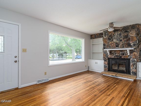 Charming 3-Bedroom, 2-Bath Home Near UND & Altru! This well-maintained home features beautiful hardwood floors throughout the main level and a cozy wood-burning fireplace. Enjoy peace of mind with newer windows and a new roof installed in 2015. The spacious backyard is perfect for entertaining and includes a rec room off the garage, a storage shed, and an extra poured concrete slab for additional parking.