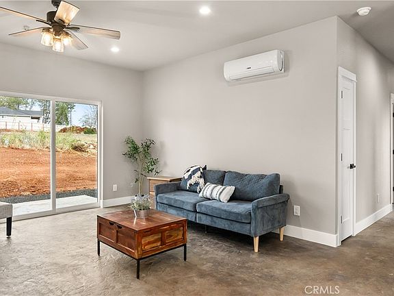 Welcome to this newly constructed home that sits on over a quarter acre in upper Paradise. This home features 3 bedrooms, 2 bathrooms, and stamped concrete floors that run throughout the home for durability and easy cleaning! The open floor plan with large windows allow lots of natural light to flood in making the living room and kitchen the place you'll spend most of your time. The kitchen has granite counters, custom walnut cabinets, a farm sink, spacious island, pantry, and all appliances included. Down the hall is the guest bathroom and the guest bedrooms that each have a ceiling fan and ductless mini split head. The master bedroom is roomy with a sliding glass door to the backyard and an ensuite bathroom with a floor-to-ceiling tile shower, and a vanity with plenty of counter space. The indoor laundry room has the same walnut cabinets as the kitchen for extra storage and is conveniently located off the garage. Other features include a brand new septic tank installed in 2022, hybrid water heater, and some mature bushes/shrubs on one side of the lot for a little extra privacy. Come make this property home and sip coffee on the front porch and visit Noble Orchards just down the street every weekend!