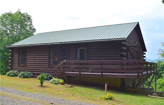 Log home with long range views of Mt. Pisgah and Cold Mountain from a large cover porch! Established neighborhood close to town but feels far out and private. Great home for year round or seasonal. Full unfinished basement with a bonus room framed in. Possibly sold furnished.