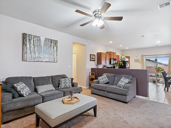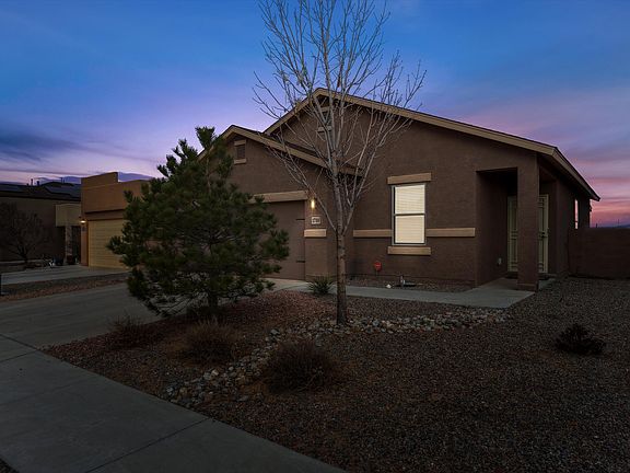 CLEAN AND COZY home in the High Range Subdivision of Rio Rancho! This charming home features 3 beds/2 baths, making it the perfect size! You'll love the tile flooring in the kitchen, which provides easy maintenance and a modern look. The bedrooms are comfortably carpeted, providing a cozy and inviting atmosphere. Walled-in backyard is the perfect place to unwind and relax, with a covered porch sitting area ideal for enjoying a cup of coffee or entertaining guests. The southwest xeriscape surrounding the home is both beautiful and low maintenance, making it easy to enjoy the natural beauty of the area without constant upkeep. A wealth of nearby amenities, including shopping, dining, nearby parks and trails provide a perfect backdrop for outdoor activities and recreation. Schedule a showing!
