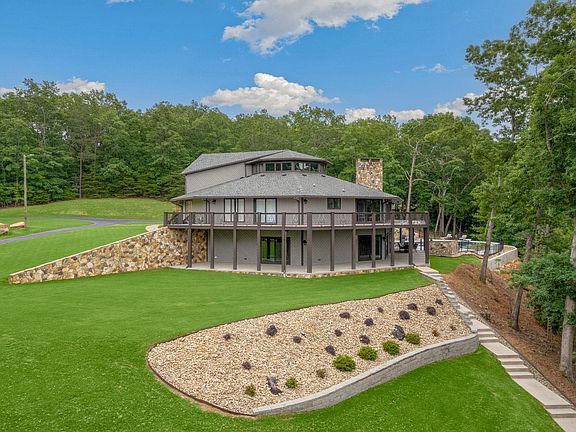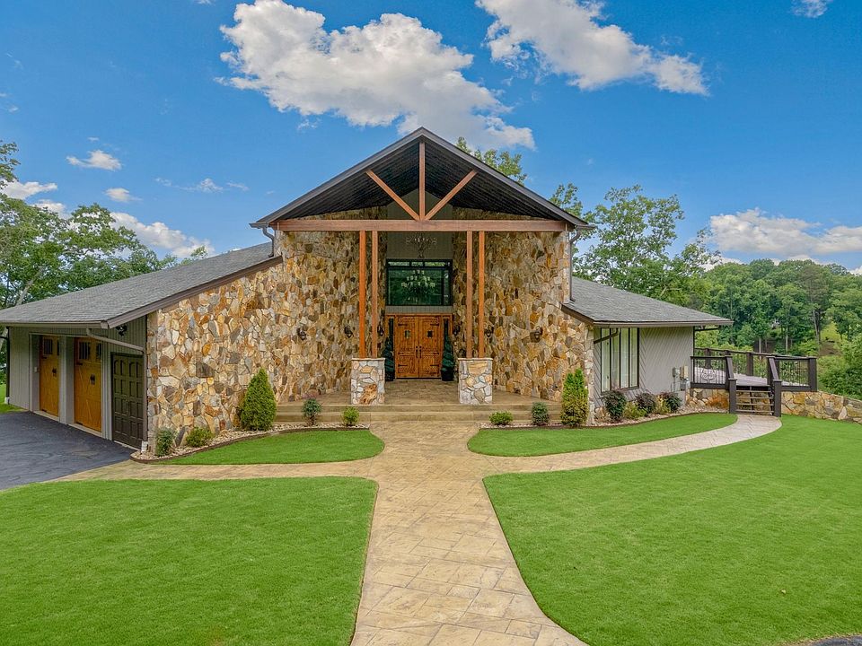 Lake Blalock has never before offered such a breathtaking and luxurious property as this Frank Lloyd Wright inspired masterpiece. Nestled on nearly 3 acres of pristine, expertly manicured lake front land, this unique octagonal home is sure to amaze even the most discerning of tastes. With its stunning, refreshed interior, this residence boasts four bedrooms, four full bathrooms, and one half bathroom, as well as a formal dining room, eat-in breakfast area, and open-concept kitchen and living area. As you enter through the grand covered entrance and knotted alder wood door with iron hinges, you will be struck by the tall, piercing ceilings and oversized transom windows, which perfectly showcase the stunning beam work and lighting. The family room, with its cedar beamed ceilings and one-of-a-kind 22-light custom chandelier, leads you to the living room, where a natural mountain rock wood burning fireplace and panoramic views of Lake Blalock await you from the unobscured sliding doors and windows. Outside, a wrap-around deck made of composite wood decking with iron spindles offers breathtaking views of the flowing lake and custom in-ground saltwater pool, complete with a spill over Jacuzzi and tanning ledge. The main level of the home offers a master suite with an en-suite bathroom that features a double-sized shower with three shower heads, a separate jetted-garden tub, and a double vanity. The ample closet space and built-ins on both sides provide plenty of storage for all your fashion needs. The main level also features two additional bedrooms with a Jack n Jill style bathroom, ideal for your personal office, kids' room, or guest room. The kitchen, the heart of the home, is a chef's dream with double thick granite countertops, travertine stone backsplash, ivory glazed cabinets, and stainless steel appliances, including a dual-wall oven, built-in drawer microwave, Kitchen-aid dishwasher, and smooth cooktop with an elegant range hood. The fully finished basement offers a second kitchen, multi-purpose room, recreational room perfect for a gym, laundry room, SAUNA, and a second master bedroom, which would make an excellent in-law suite. Access to the magnificent covered wrap-around patio adjacent to the pool space makes this home ideal for entertaining, especially with the built-in BBQ cookout area. With all these incredible features and more, we invite you to experience the splendor of this stunning Lake Blalock property for yourself. Book a private showing today and allow us to watch as this home takes your breath away!