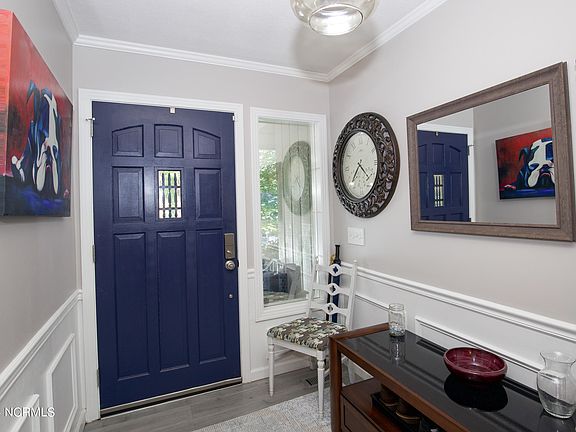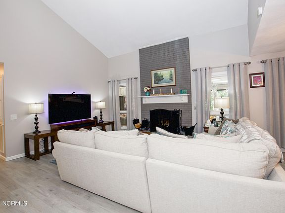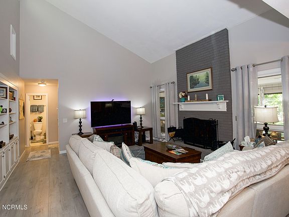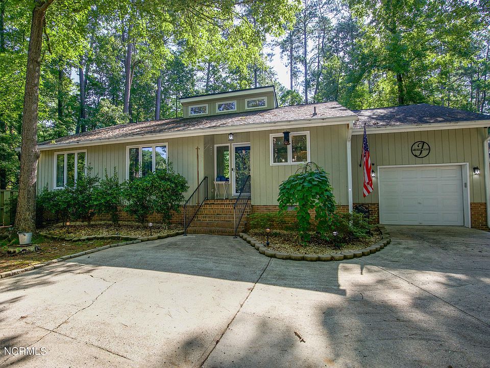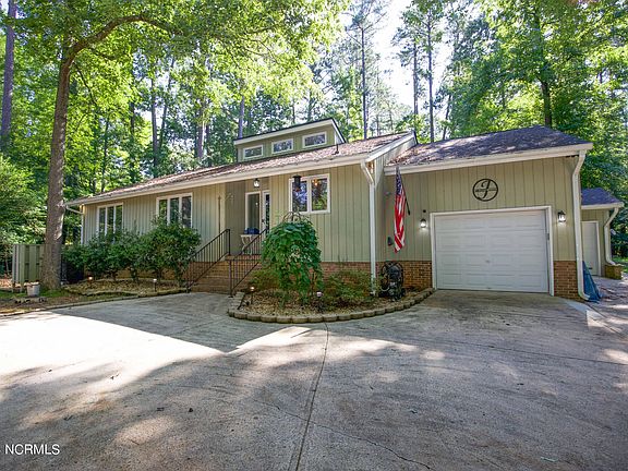 Enter and enjoy abundant natural light, wains coting, large windows, vaulted ceilings, LVP flooring, brick wood burning fireplace with blower, built in shelves and cabinets, huge sunroom, and updated kitchen with island, granite countertops, stainless steel appliances, all overlooking your dining space with modern light fixtures. Large Master Suite with walk in closet and updated bathroom. Large closets in the other two bedrooms complete with built in shelving. Laundry room with washer dryer, built in drying rack, wash sink and ample cabinet storage. Enjoy your morning coffee from the large sunroom and view of crape myrtles, camelias, azaleas, apple tree, mature hard woods, and more. Outdoor dining option under the lit pergola. Firepit, raised planter beds, and gazebo make this the perfect gardening oasis. Golf cart storage, workbench in garage, plenty of space to add storage in garage. Embrace retreat living in Laurel Thicket by taking your golf cart to the Community Pool and Tennis. Carolina Trace offers Golf Course and Lake privileges. Convenient drive to Raleigh/Triangle area, Fort Liberty (Bragg) Pinehurst and the US Open 2024. ASSUMABLE VA LOAN AVAILABLE! Visit www.CarolinaTrace.org for amenity and neighborhood info. Showings begin 4/26