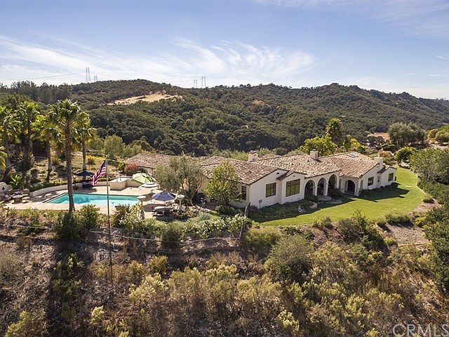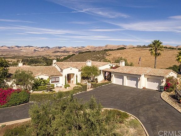 Panoramic views of Edna Valley! Situated on a hilltop 5+ acre parcel, this 4160+ sqft Spanish style estate was built for entertaining. Each of the four bedrooms has their own attached full bathroom. Satillo tile floors throughout most living areas. Gourmet kitchen with Viking appliances, custom granite counter tops and spectacular views. The dining room and formal living room open to a cabana style patio which features a remote controlled fireplace, surround sound, and has been wired for an outdoor TV. The spacious master suite has its own climate control system. The master bathroom features unusual Onyx counter tops, set-in glass sinks, heated Travertine floors, matching custom mirrors, remote controlled window shades, large jacuzzi tub, walk-in round shower and room sized custom closet with skylights. The walk-in wine cellar has a 1450 bottle capacity, its own AC system, humidifier and alarm. In the fenced pool area you will find an outdoor kitchen with Santa Maria style BBQ, gas grill, smoker, refrigerator and surround sound. The pool has an automatic cover for safety. No expense was spared in construction of this home!