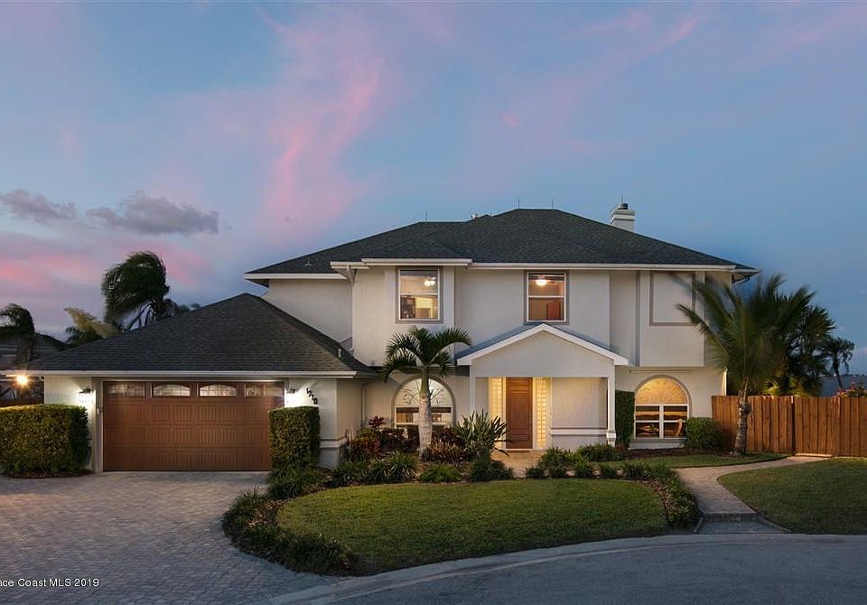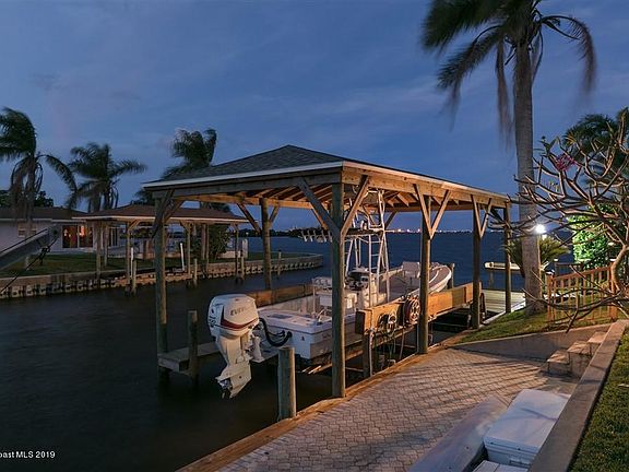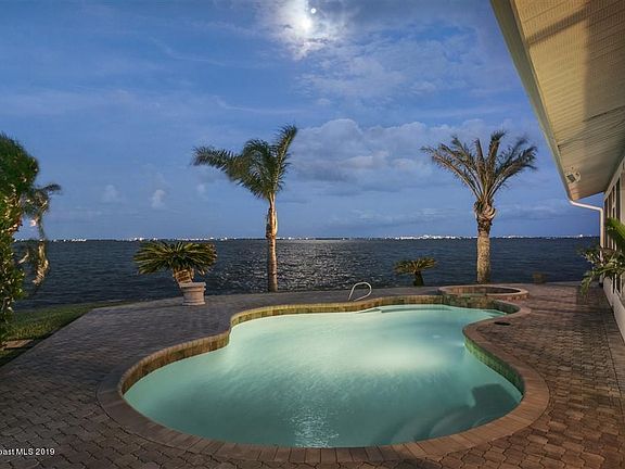 Direct Banana Riverfont Pool Home situated at the end of a cul-de-sac with additional frontage on a deep-water canal allowing for larger boats. Live within quick boat ride to the Canaveral lock and blue water fishing or striking distance of Walkers Cay Bahamas (110 miles). Awesome outdoor spaces include a riverside pool and spa surround by paver decking, canal side covered boat lift, enclosed and covered porch spaces, dock space for kayaks, paddleboards, and fishing gear, additional paver deck with firepit, grill station, and captivating river views, These outdoor spaces will welcome your family and friends all year round.Interior spaces include 5 bedrooms and 3 1/2 baths all tastefully updated and decorated. The large island kitchen's warm wood cabinetry is the perfect backdrop to the white tile flooring and granite topped counters. The home chef will embrace the six burner gas cooktop with vented range hood, double ovens, & wine frid