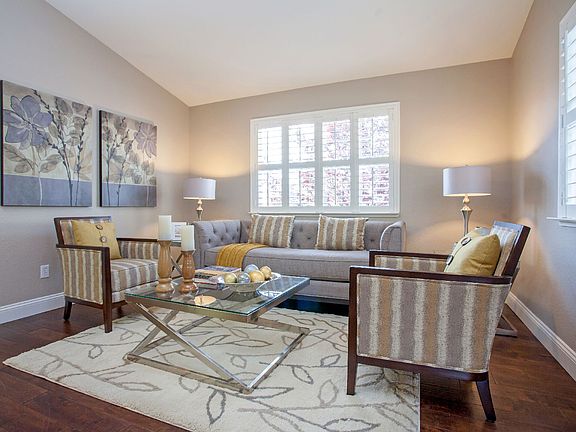 Located in the Greystone community of San Ramon, 1710 Cutter Ct. is a sunny two bedroom end-unit townhome that has an inviting open floor plan with vaulted ceilings, dark hand-scraped wood floors and an abundance of windows. Private and serene, this end-unit townhome has beautiful views of the landscaped common area with its ecological protected creek.