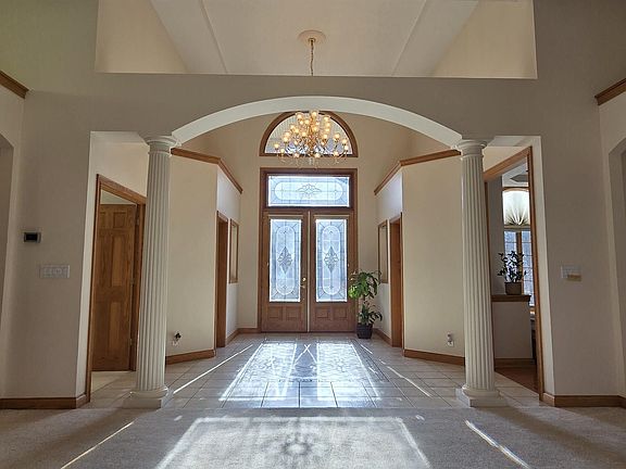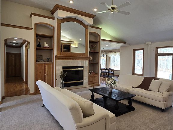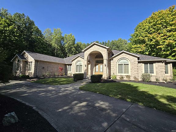 Welcome to this custom Foley built home. Impressive all brick sprawling ranch on a cul-de-sac with a finished basement sitting on 1.5 partially wooded acres in West Lafayette in the distinctive and secluded (yet surprisingly close to everything) Scharerdon Woods subdivision. Brick pillars and a pull through driveway lead up to the gorgeous double doors and archway over the front porch. Greeting you inside the foyer you'll find beautiful inlaid tiles, a grand chandelier (with switch to lower for changing bulbs!), and soaring ceilings with archways and columns to define the spaces. Dental and crown molding, multiple tray ceilings, all natural woodwork, warm & inviting oak flooring and solid core doors are found throughout the home to elevate every detail. Wood casement windows with removable grills (many are stored in basement). Great room enjoys built in bookcases, a stunning fireplace wall and mantel with built in mirror, vaulted ceilings, and full wall of windows to enjoy views of the wooded back yard. Adjoining breakfast nook and spacious chef's kitchen with bay window to the backyard as well. Kitchen boasts ss appliances, gas cooktop and new downdraft vent, island with vegetable washing sink, granite countertops, and classic staggered cherry cabinets. Formal dining room with inlaid carpeting and stunning multiple tray ceiling with crown molding details. Spacious 18x20 Primary bedroom boasts the closet of your dreams and ensuite bathroom you never knew you needed that features a sunken jetted garden tub set apart by columns, 8 ft double vanity with plenty of storage, and separate room for toilet and walk in tiled shower with additional handwashing sink and vanity. Sunlight flows in through the sunroom windows enjoying additional views of the wooded backyard. 3 additional oversized bedrooms each with a walk-in closet and full ensuite bathroom. 2 additional half baths and large 14x10 laundry room with gorgeous window, plenty of storage, and functional utility sink finish out the main floor. Full basement with wet bar and 2 large adjoining rec rooms that feature 3 egress windows, half bath and 2 large finished storage rooms complete the basement. 3 car garage with spacious concrete driveway. Peace and quiet abound with serene views of the woods and deer that come right up to the large patio with plumbed in gas grill. Roof in 2020. New blown-in insulation in 2023. Drinking water filtration system.