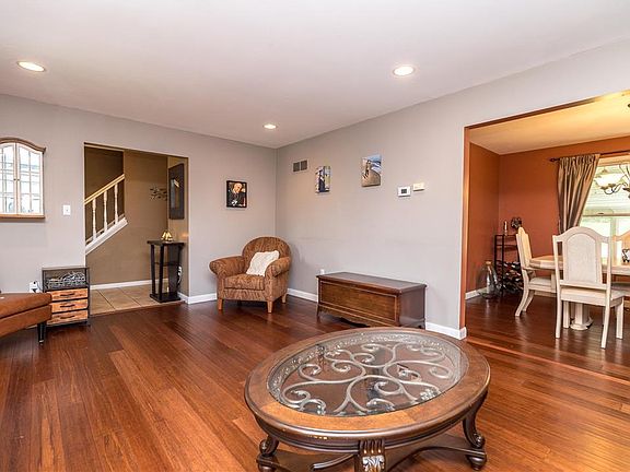 Discover this charming 3-bedroom, 1.5-bathroom home nestled in a peaceful cul-de-sac, offering both privacy and comfort. Enjoy your mornings on the inviting covered front porch and step inside to find a spacious living room adorned with elegant bamboo flooring. The open kitchen features modern stainless-steel appliances and flows seamlessly into a cozy breakfast room. Host dinner parties in the formal dining room or relax in the family room complete with a brick fireplace and built-in shelving. The expansive sunroom, with its cathedral ceiling and ceiling fans, provides a versatile space for entertaining. The finished basement offers two additional finished rooms and ample storage. Large paver stone patio and private backyard are perfect for outdoor gatherings. Convenient first-floor laundry room adds to the ease of living, One-car O/S attached garage, Central Air. This home combines modern amenities with a welcoming atmosphere, making it an ideal choice for your next move.