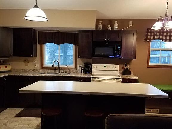 This is a very nice split foyer home. The main level has the nice kitchen with built in seating and a large island with additional seating, dining area, living room, 2 bedrooms and a full bath. The finished lower level has a large family room, 2 bedrooms and another full bath. Nice sized bathrooms, single attached garage, new C/A in 2016, great patio area in the back with a pond. Nice curb appeal with the great East side location close to Garrigan High School. Extra shed in the backyard and a nice heated shop for him or her!