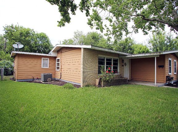 Great house on corner lot with 4 bedrooms, 2 baths, large yard, and original wood floors. Kitchen features gas range, ample cabinet and counter space, newer built-in dishwasher, brand new flooring and pantry. Hard wood floors are in main part of house: Living room, dining area, hallway, and 3 bedrooms. Utility area is located in enclosed patio area behind kitchen with pass through opening. Room would work great as craft area. Fourth bedroom and second bathroom located off enclosed patio area would make a perfect guest room/man-cave. Enjoy the covered patio and large yard. Refrigerator, Maytag washer and dryer convey with sale! Seller says bring an OFFER. Seller is willing to NEGOTIATE.