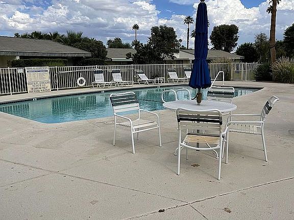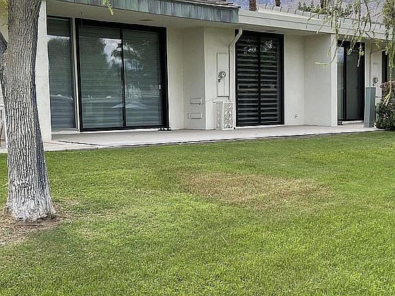 This exquisitely renovated, Sunrise Villas, 2 bedroom 2 bath unit is cool and contemporary with a Zen-like feel. High end and neutral, any style would be complimented. Private laundry room. Shared garage for 1 car and 1 tandem parking space in the driveway. Community pool/spa. Close to SmokeTree Shopping and an easy jaunt to downtown Palm Springs.