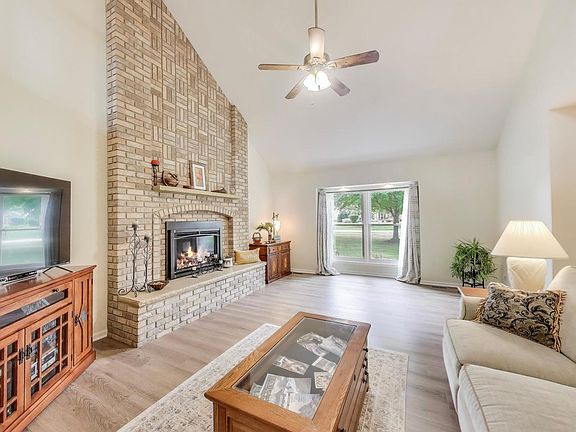 Gas fireplace insertFinished basementSoaring ceilingsLuxurious primary suiteCorner lotLarge family roomUpdated bath