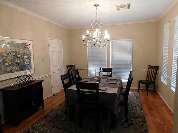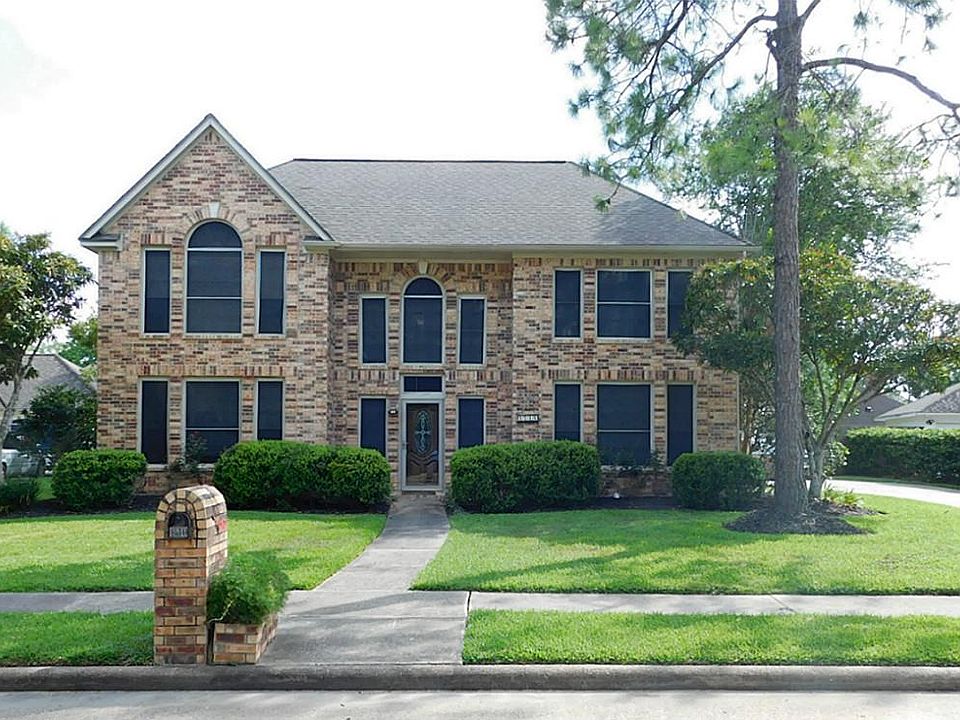 Remarkable 4 bdrm, 2.5 bath brick home in the peaceful Falcon Ridge community. Grand foyer welcomes you with two story ceilings, large windows and lots of natural light. Island kitchen features granite counters. Open plan to living room and breakfast room is great for entertaining. Spacious master offers dual sinks, garden jet tub and separate shower. Fenced back yard offers swimming pool with water feature, with covered patio. Separate fully fenced and grassed side yard. Never flooded