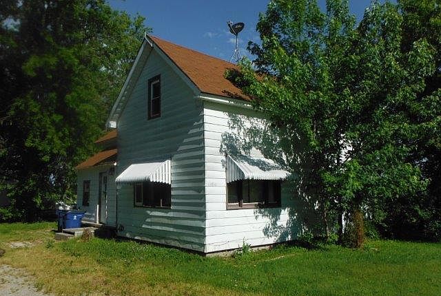 2 bedroom, 1 1/2 story home on a crawl space. Wood stove in kitchen. 2 car pole barn is detached. Over 1/2 acre of land with mature trees.