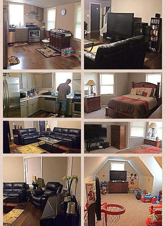 Adorable 4 bed, 2 bath home w/ open floor plan, wood floors throughout main & upper floors, kitchen w/ marble counter top, subway tile backsplash, gas range, stainless appliances, sun room off living room w/new deck for entertaining, master on main level, ceramic tile baths, lower level office, new hot water heater & sump pump. Freshly painted, yard w/ play area, ample parking, Sold as is.