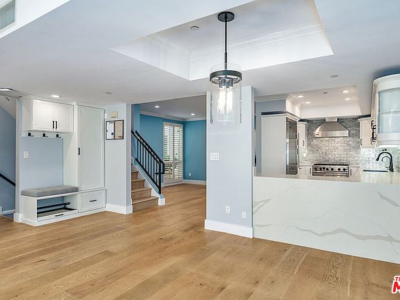 Experience contemporary luxury living in this beautifully upgraded West Los Angeles townhouse, every inch of this home has been thoughtfully designed with modern comfort and style in mind. Step inside to find wide-plank French oak flooring flowing throughout the main living areas and bedrooms. The entry level opens to a versatile family room/den, perfect for relaxing or entertaining guests. The gourmet kitchen is a true showpiece featuring custom cabinetry, quartz countertops, wine fridge, a striking tile backsplash, and top of the line Viking Professional appliances. The kitchen seamlessly connects to a spacious dining area and open-concept living room, complete with a cozy fireplace and an abundance of natural light. Upstairs, all bedrooms are thoughtfully situated for privacy and comfort. Two secondary bedrooms share a beautifully updated hall bathroom, while the primary suite impresses with soaring ceilings, ample closet space, and a private ensuite bath. Additional features include bidet-style toilets in all bathrooms, in-unit laundry upstairs, and a private two-car garage with direct entry. A private staircase leads to a large loft ideal for a home office, studio, or gym and access to your very own rooftop retreat. The rooftop deck is an entertainer's dream, featuring decking, pet-friendly turf, built-in BBQ, gas fire pit, Pottery Barn outdoor dining set with umbrella, and panoramic city views perfect for sunset gatherings or quiet evenings under the stars. Located in a prime West LA neighborhood, just moments from Stoner Park, Target, Wilshire Blvd dining and cafes, and everything the Westside has to offer.