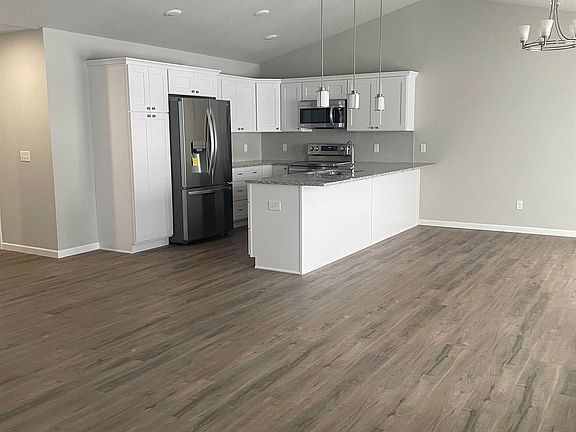 New condo in town close to shopping & schools. 3 bedrooms, 3 full baths with private master bath . Master bedroom has walk in closet. Finished basement with family room, full bathroom, and bedroom. Cathedral ceilings with skylights in living area. Gas fireplace. Sliding glass door to deck. First floor laundry. Upgraded kitchen cabinets with soft close doors & drawers. Granite countertops. Stainless steel refrigerator, stove, dishwasher, & built in microwave. Garbage disposal. Washer & dryer. 2 car garage with drywall finish and garage door opener. Lawn irrigation, landscaping and lawn included. Large covered front porch. Vinyl siding and brick exterior. Gas forced air furnace with central air.