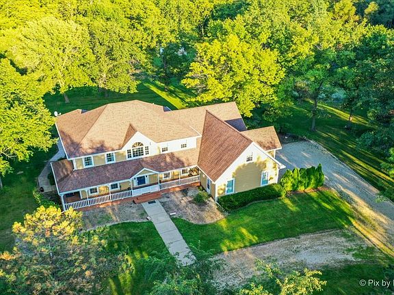 Buyers bring your offers! Recognize your positive inner thoughts as you make your way up the drive to this custom home, undisturbed on 5 peaceful acres. As you enter the home, you will immediately recognize the high quality details thoughtfully incorporated within the home. Making your way from the foyer that showcases high ceilings, and energizing natural light you'll follow the path of the natural hardwood floors into the living room. The immediate gravity of the wood burning fireplace pulls you further in and envisions thoughts of holiday gathering cheer and a quiet space to flock to on a day needed of relaxation. Enter your way to the kitchen that accommodates a large island for entertaining or prepping those speciality dishes. Escalating our way to the second level, the primary bedroom is a world of its own with a myriad of closet space and large bathroom. Let the second floor loft be a creation of your own design. A full finished basement gives even more quality space to utilize with 2 bedrooms for when needed. Other key features are main floor bedroom with an attached bath, main floor laundry, A 3 car garage, and wrap around porch. Did we mention the Pond? Maybe the shed for other storage purposes? Schedule your showing today!! *Property being conveyed AS-IS.