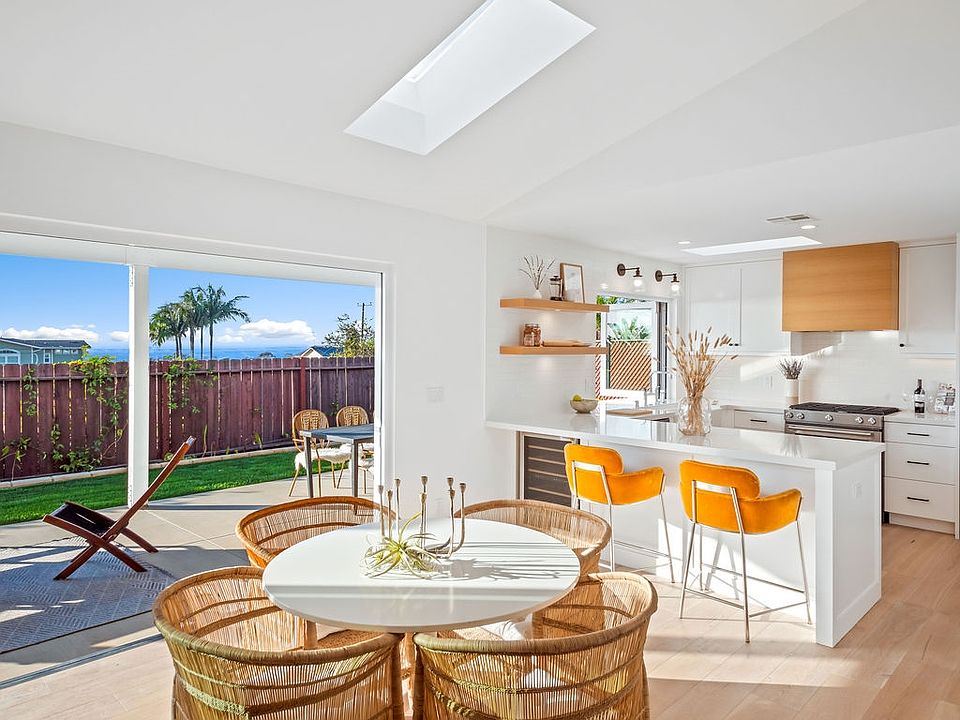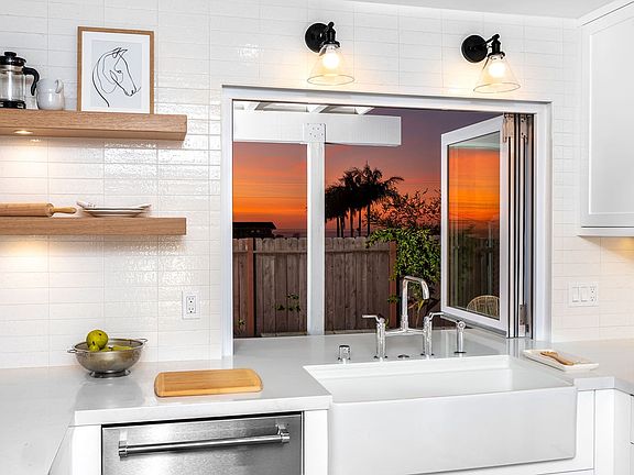 Brand new and beautifully designed coastal-chic Cardiff home. Walk through the custom dutch door into the bright, open floor plan with ocean and sunset views. Re-configured for an indoor/outdoor lifestyle, enjoy vaulted ceilings and LaCantina doors and pass-through kitchen window. All bedrooms are en suite with a separate powder room for guests. Custom closets, laundry room, wine fridge, and brand new roof. Attached 2 car garage w/new modern garage door. Fruit trees. No HOA.