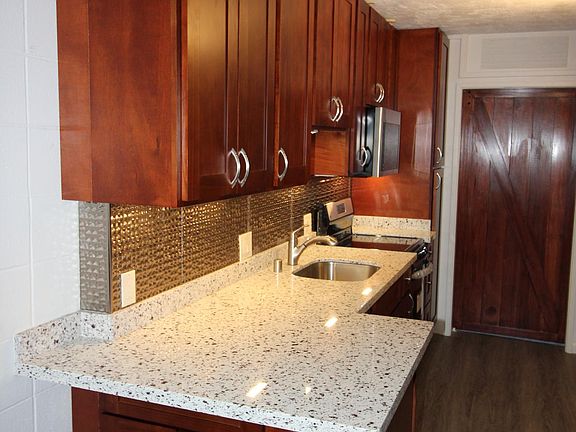 Recently remodeled & gorgeous - 1 BR/1BA in the heart of Makiki. This 4th floor unit gets tree top views and a nice breeze or create your own breeze with the ceiling fans. The upgraded kitchen has cherry cabinets, full size refrigerator, quartz countertops, range/oven along with a microwave range hood, a dishwasher and a pantry. The unit has luxury plank flooring and there's a sliding barn door to the bedroom. Residents have use of the lanai space outside of the front door for patio seating or container gardening. Electricity, Hot Water, Sewer, Trash & Water are Included Available Now for a 6-month lease! Friendly building with community laundry on the rooftop deck. Residents can rent a parking space (There currently 2 spaces available for $120/mo. and one for $80/mo. to park in the bldg). Street parking is usually found within a block. No Pets. No Section 8.