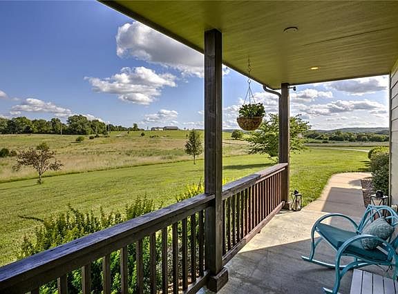 Amazing country retreat just 10 minutes from Lawrence and 25 minutes to Olathe. Horse-lovers paradise with a 2-stall barn and fenced pasture. Chicken coop and 30x40 insulated shop w/ concrete flrs. Located in sought-after Vinland Valley w/ expansive hilltop views, just under 20 acres. Home has 5 bdrm, 3.5 bth w/ master and office/2nd bed on main floor. Laundry hookups on each level. 2 living rms, open floor plan, 3 patios and a porch to soak up the views and great for entertaining.