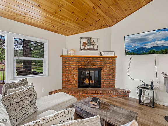 Flagstaff Charm w/ Water Views! Nestled among tall pines along Humprey's Lake, this welcoming single-level townhouse combines comfort & convenience in one of Flagstaff's most peaceful settings. The open floor plan, vaulted ceilings, and cozy fireplace bring a true mountain feel - with the ease of single- level living and an attached two car garage. Enjoy serene golf-course views dusted in snow & quick access to Arizona Snowbowl, just 30mins away - a perfect balance of peace & adventure. Thoughtfully updated throughout, and reimaged kitchen lets this home capture the spirit of Flagstaff living - relaxed, natural, and full of character! Whether watching snow fall over the pines or listening to summer breezes across the lake, this 2/2 townhouse offers warmth and simplicity in every season!