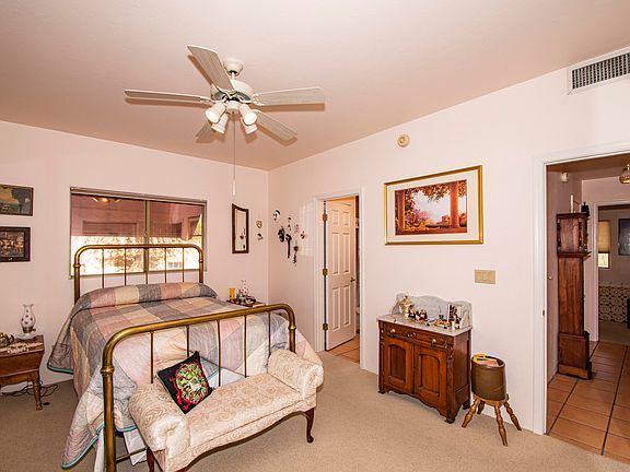 Quality & solid built Santa Fe custom home, nestled on desert lot in cul-da-sac location. Huge Country Kitchen w/Island, Maple cabinets all with pull out drawers Has elec range with gas available. All rooms are extra large for family or entertaining. Beautiful pool which is well maintained with electric cover. Built in BBQ grill home backs up to wash so no immediate neighbors in the back. Sq foot does not reflect addition of 136 sq ft ( Porch was enclosed) for craft room .Solar heating is new and financed.. (not Leased) Furnace and Air just a few years old Outside of home, Stucco has been completely repaired and freshly painted. Also large storage shed will stay approx 9X13.