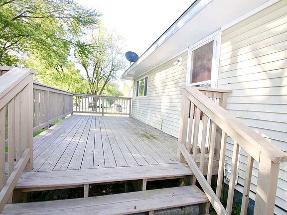 This adorable one story home sits next to a vacant corner lot on a quiet street. Features of this 3 bedroom home include super spacious living room, large, applianced eat in kitchen, and nice sized laundry room. Additional features include large deck, fenced back yard, concrete pad for patio or shed, 2 car detached garage complete with ventilation fan and gas line for potential gas heater. Windows are replacement windows and back side of home has newer roof.