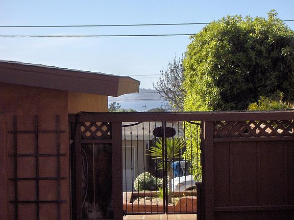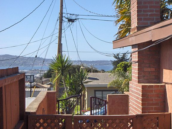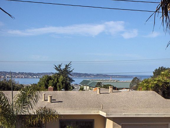 Perched high atop a hill in desirable upper Seaside.This spacious 2 bed 2 bath home with office/den with bay views. Features include-Master suitewith office/den and slider that leads out to gorgeous surrounding saltillo tile walkways, deck area and hot tub, 2nd bedroom suite has private entrance, updated tile bathroom and large closet. Additional features include- recessed lighting, front deck with seating area, fenced secluded back yard ,covered deck with piped in gas for fire pit, dual pane windows, fireplace, 2 car garage w/built ins and drought resistant low maintenance landscape.