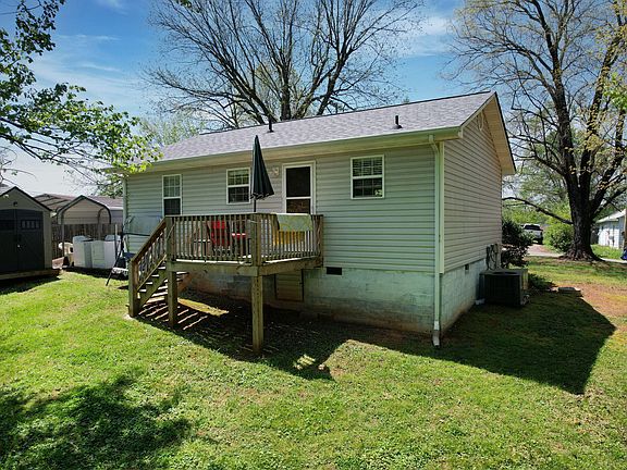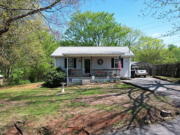 Welcome to this charming 2 bedroom, 1 bathroom house with a new roof and leaf filter system in place! The HVAC system was installed in 2020, ensuring you stay comfortable year-round. The covered front porch provides a cozy spot to relax and enjoy the neighborhood. Head inside to find a spacious living area. The newer back deck overlooks the well maintained great yard, perfect for outdoor gatherings and enjoying the fresh air. A storage building offers additional space for all your tools and equipment. The 1 car carport provides convenient covered parking. This house would make a great starter home or could be a perfect fit for someone wanting to downsize!