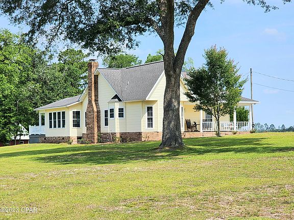 Country living at its finest! Looking for a beautiful 5 acre estate that is in a highly desirable area and an equestrian lovers dream? Or maybe just a peaceful home in the countryside to enjoy with your love ones and animals. Then this is the right property for you! Located less than 6 miles from Chipley, Wal Mart, schools and the hospital. Only 45 minutes from the worlds most beautiful beaches so you can go and enjoy the day and then come home to your very own private oasis. With almost 2,000 square feet, 3 bedrooms and 2 full baths there is plenty of room to raise a family or just have spare bedrooms for visiting friends and family. From sitting on your own front porch swing just wait until you experience the breathtaking sunrise everyday while enjoying your morning coffee. The kitchen has been recently updated with granite countertops, granite sink and a new stainless steel dishwasher and stove that are less than 3 months old. The stainless steel refrigerator was replaced in 2021 along with LVP flooring throughout, carpet in all bedrooms, lights, ceiling fans,16 SEER 3 ton ac/heat pump and all new duct work was installed as well. Come sit and relax in the Florida room that offers an abundance of natural sunlight that flows effortlessly in from the windows for you to enjoy. The oversized living room has a real wood burning fireplace and connects to the Florida room and the kitchen so you can entertain from just about anywhere in the house. Wow, and we haven't even made it outside yet! Speaking of the outside, lets start with the moment you pull up to the beautiful double entry driveway gate that keeps the unexpected guests from just stopping by. As we make our way up the paved driveway you can see perfect setting for the house on the hill that offers views of the surrounding farmland. Looking around the property you will see 5 different structures, a 10x14 wood storage building, 12x24 metal shed that is only a few years old and is on skids so it can be moved to a new location if desired, 12x24 lawn mower shed, a 24x40 workshop (man cave) that is wired throughout and plumbed with an on demand hot water heater, a kitchenette, sink, 6 windows for plenty of light, 2, ceiling fans, closed cell spray foam insulation, 2 entry doors and an 8 foot roll up door. Don't forget about the large 32x40 barn that is fully enclosed with a cement floor, usable loft, 8 large windows, 2 large 12x8 sliding doors on both ends of the barn, 2 personal entry doors on both ends of the barn and your very own riding ring just outside the barn. The best part is there is plumbing and electrical so you can stay out around the barn messing with the critters all night if you desire or just hang out by the firepit with friends and family. One of the out buildings has a 30 amp RV receptacle for additional power hookup for your personal camper or friends and family passing through. The home also has a dedicated outlet for a portable 50 amp generator that can power the home, workshop, barn and the water pump. One of Florida's many natural clear springs is located just a short drive from the property for the public to enjoy. What more do I need to say, don't wait any longer give your realtor a call and lets make your dreams come true!