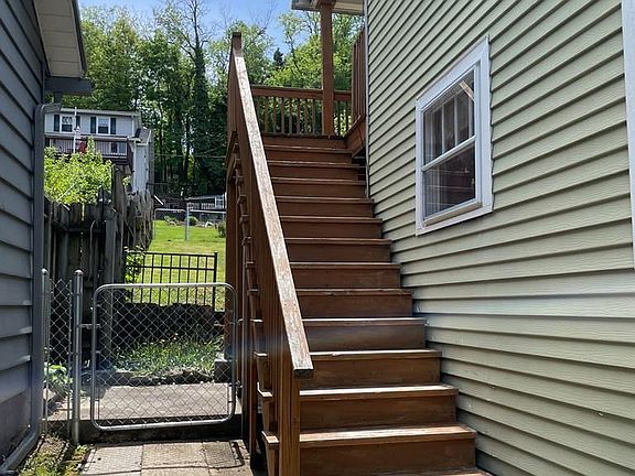 Cute 2 unit investment property first floor consist of Lr, 2 bdrms(one doesn't have a closet),bath and eat-in kitchen rent is $609 tenant pays electric, (gas, water/sewer included in pmt). Second floor apt is vacant and consist of eat-in kitchen, full bath,living room, bedroom rent could be $600-$650 tenant would pay electric (gas , water/sewer included in rent) Nice fenced in back yard, front covered deck, back deck overlooking yard