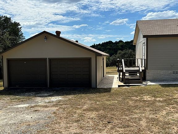 This Fantastic small acreage property offers privacy with a nice manufactured home with all new flooring and paint. No carpet and features not normally found in this price rangea beautiful fireplace and oversized two car detached garage with workshop area and lots of additional parking! A central water system on Unrestricted property outside the city limits. Property offers a 3 bedroom with 2 baths, Great open floor plan with Beautiful Kitchen with lots of storage. Tons of windows overlooking the great hill country views. Enjoy the tranquility and watching the deer, birds and sunsets all within 10 minutes of Kerrville.