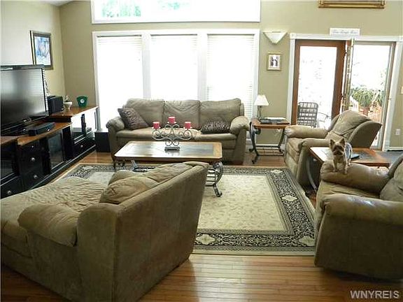 This beautifully kept contemporary open concept A frame home sits on a very private 5+ acre wooded lot just minutes to Lewiston village. Fully updated kitchen, granite counters, 4 bedrooms, 3 baths, including master suite with walk in closet and whirlpool bath, ceramic tile and HW floors throughout, circular stairs to loft, 3 fireplaces, 1 pellet stove, 31' x 23' finished basement, new furnace, C/A, 2x6 construction, 2 car attached garage & 3 car detached, partially covered back patio, in ground pool/newer liner, full house generator, roof 2010. All appliances and lawn mower included.