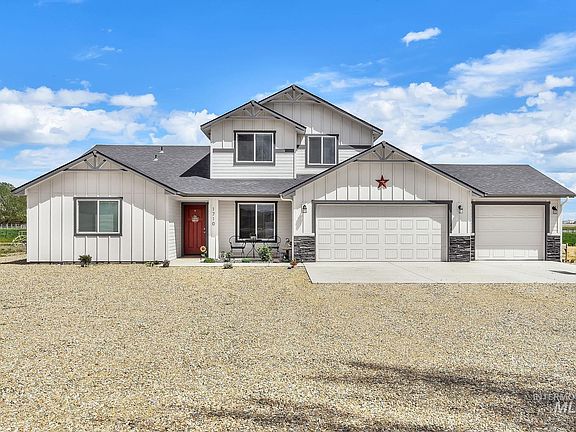 This outstanding country acreage offers stunning views, privacy & seclusion with NO HOAs & plenty of room for animals, toys, & equipment. You’ll enjoy endless outdoor living options onsite w/ fenced & irrigated pasture, fruit trees, & garden space; or just relax under the extended, covered patio w/ a gas bbq stub & wired hot tub pad. It’s also just minutes to the Snake River for fishing/boating & close to the Owyhee Mountains for horseback/ATV Riding. The impressive, newly built home is highlighted w/ modern features & premium materials including granite counters, Knotty Alder cabinets, ss appliances, high-efficiency dual gas/elec furnace & tankless water heater. The open concept floor plan boasting high ceilings & large windows is spacious & comfortable w/ a brilliantly designed layout providing both a main level master suite and a junior suite upstairs. Flex room off the entry makes an ideal office/den or 5th bdrm.