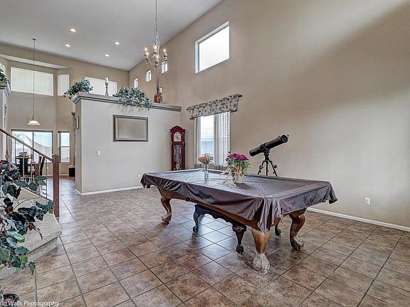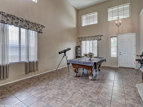 Beautiful tri level Hacienda home with wide open floor plan, soaring ceilings, and many windows for a spacious feel. You'll feel right at home when you walk in. Kitchen has beautiful tile, corian countertops and maple cabinets. 3 beds, 2 baths and loft upstairs. Full bedroom and half bath downstairs, with large family room. Easy maintenance saltwater pool with sun cover, pool speakers hard wired, and patio has pull down sun shades installed. Lots of room for the family and entertaining. No houses behind provide for privacy and beautiful unobstructed sunsets. This beautiful home with pride of ownership will not disappoint.