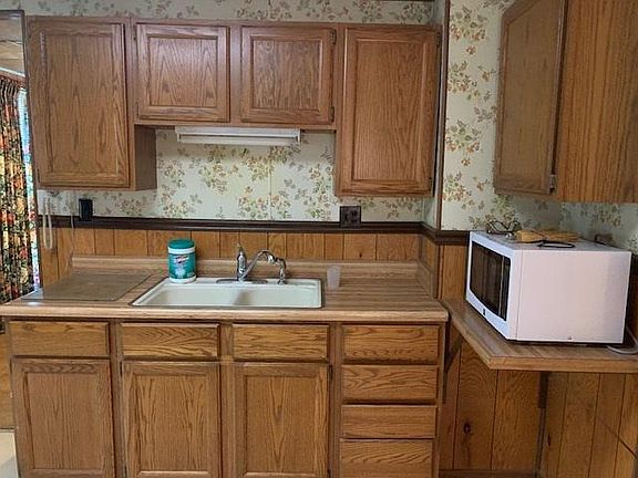 Settle in to this well maintained three bedroom, one bath home which offers a detached garage and fenced yard. Enjoy the summer breeze on the large front porch or under the covered patio which is perfect for a firepit or bbq. Master bedroom is very large and has a pocket door, living room is cozy and kitchen comes with gas stove/oven, refrigerator, and microwave and large pantry. Bathroom features step in shower. Laundry is easily accessible on main level located in a large room that also offers extra storage. Detached, glazes block garage has alley access, as well as a great loft area. Make your appointment to tour this home today!