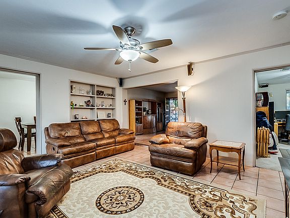 Move right in to this super clean and meticulously cared for brick home in Terra del Sol. Fabulous green backyard with beautiful Rose Garden bordering large section of back block wall. Step through the front door into living-room and you'll see additional family room area and separate dining room with built-ins. Off-the-wall bed and built-in shelving, plus desk in Bedroom #2 stays. There is more Porcelain Wood-look tile flooring on hand to complete other bedrooms and bathrooms. Private office/den, large separate laundry room. Metal Gate from Backyard to FOUR car covered parking, RV Hookup at other side of house. Newer AC. Close to everything! Welcome Home.