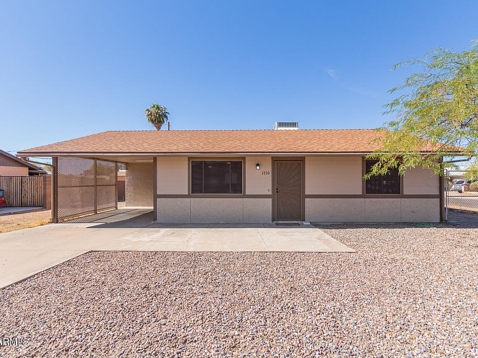 Great location, premium corner lot, detached garage, no HOA, move-in ready home with a great view of the Superstition Mountain. The detached garage is a standout feature w/ a 200 amp service & 220V outlet for welders & offering more than just parking—giving you plenty of flexible space. Be welcomed by the adorable interior, showcasing high ceilings & a comfortable living room w/ & a picture window for natural light. The pristine kitchen features stylish cabinets, pantry, & tile flooring. Both bedrooms are completely carpeted & offer large closets. All NEW interior & exterior paint, NEW carpet, NEW water heater, NEW fixtures, NEW kitchen sink, NEW bathroom vanity, New toilet, & more! This Location is tough to beat! Close to the freeway, shopping, hiking & lakes.