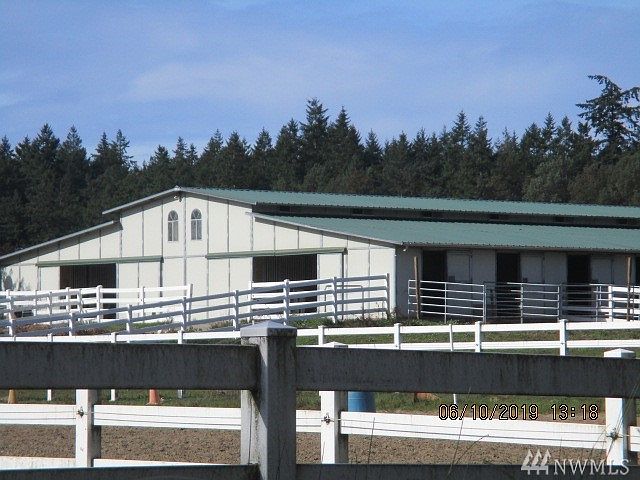 Equestrian Property. 10 Acre horse ranch complete with pasture. 2 Barns, corrals, 27 stalls, and 6000 feet of fencing. Covered round pen, outside arena, hay storage, wash rack. Everything you need. There is a 2 bedroom 2 bath cottage that offers Italian tile and wood floors, granite counter tops. Enclosed patio and garden area. This property has many agricultural /animal applications. Located just outside the city limits of Port Townsend.