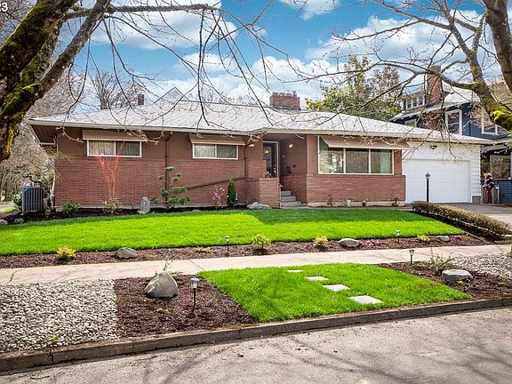 One of a kind opportunity for spacious Mid-Century living in Ladds! All of the charm down to the pink bathroom! 3 beds and two baths on main level - generous rooms, hardwood floors, original built-ins, woodwork, fireplace, big windows. Open kitchen - newly renovated with all electric induction cooktop, and updated stainless appliances. Kitchen opens to bright and airy dining/living with sliders leading outside to small fenced area. Formal entry and formal living room. Laundry room on main floor off of kitchen, for TRUE one level living! Primary suite has updated tiled bath with step in shower and wall mounted toilet. Big closets, period fixtures, and a Mad Men worthy lower level with separate outside entrance, great room with wet bar! Separate kitchenette and half bath -create a separate ADU, guest or caretakers quarters. But wait, there's more! Tons of storage, double car attached garage, newer roof, furnace, AC, radon system, updated electric panel! Newly landscaped front and side yard with sprinkler system - plenty of space to fence off side yard for privacy. So much opportunity in a fantastic location! [Home Energy Score = 2. HES Report at https://rpt.greenbuildingregistry.com/hes/OR10207398]