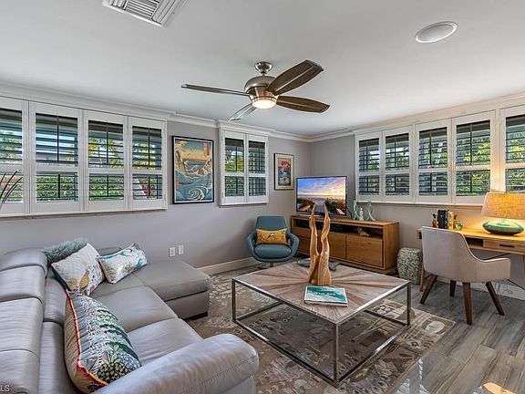 Fall in love with this stylish and cozy modern beach cottage. Fabulous Royal Harbor area location, walk to exclusive 5th Avenue and bike to Naples sandy white beaches. This is a wonderful opportunity to live in a desirable neighborhood full of multi-million dollar waterfront homes. The interior of this home was completely re-built in 2010. Additional updates were completed in 2018. Great open floor plan with 2 bedrooms and 2 baths, gorgeous designer kitchen with Electrolux stainless appliances. This home has been redone from top to bottom, new A/C, windows and doors, new baths and kitchen, hurricane protection for all windows for all windows and doors, cozy nook in master bedroom with modern Malm freestanding fireplace, Ann Sacks designer tile accents, plantation shutters, and custom closet built-ins, interior laundry room and garage with workshop. Enjoy beautiful outdoor seating areas with pergolas, Stingray fire pit, and a pool/hot tub in your private and fully fenced yard. Memberships are available at Naples Bay Resort (within walking distance) for tennis, fitness, spa, lazy river and much more. Yacht club/marina options are also within minutes for those seeking to join!