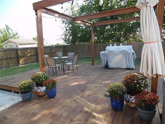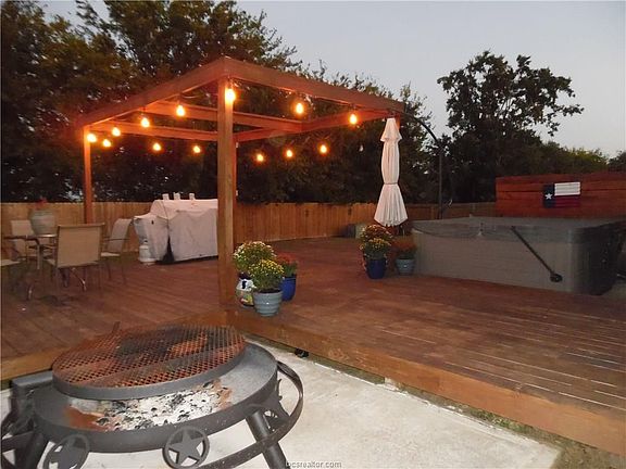 STAYCATION! 3 BEDROOMS PLUS OFFICE/BONUS ROOM! Covered patio with extended CUSTOM DECK for entertaining with PERGOLA and EDISON BULB LIGHTING! Hot tub negotiable. Separate slab for firepit. Privacy fence with nothing but fields behind you! Split bedroom floor plan with granite throughout features master retreat with views to deck. Master bath has double sinks and huge master closet. Open living area with eat in bar separates den from kitchen. Kitchen has under cabinet lighting, a gas range and breakfast area with built in hutch, tons of storage and separate pantry. Two dining areas. Spotless, well maintained home with easy access to Hwy 6 and minutes to Tower Point HEB. Come see it!